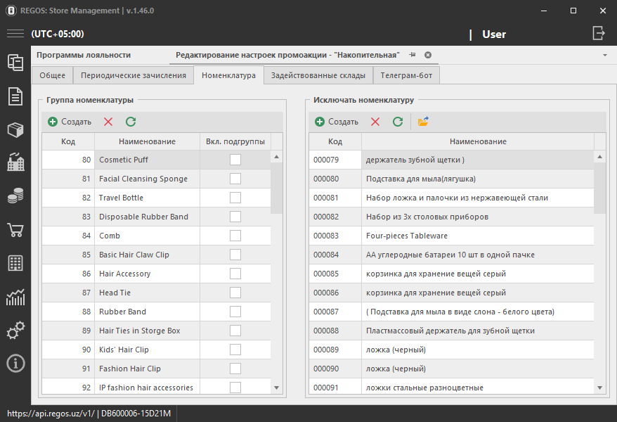 Если не указана ни одна группа номенклатуры, то программа лояльности действует на все позиции номенклатуры.