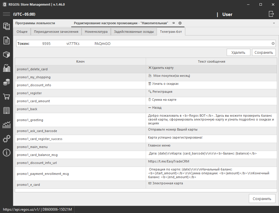 К промоакции можно подключить Telegram-бот для того, чтобы владельцы карт покупателей могли проверить свой баланс и получать уведомления о зачислении или списании бонусов с карты.