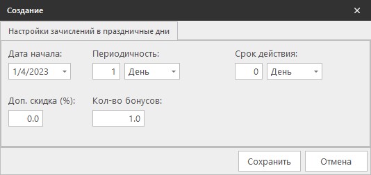 - Кол-во бонусов - количество бонусов, которое зачисляется на карту покупателя в день рождения;