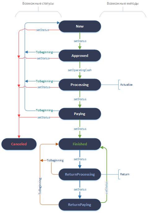| Статус | Возможные статусы | Доступные методы |