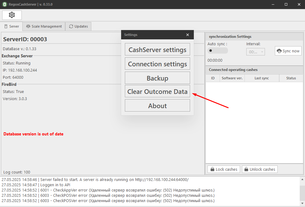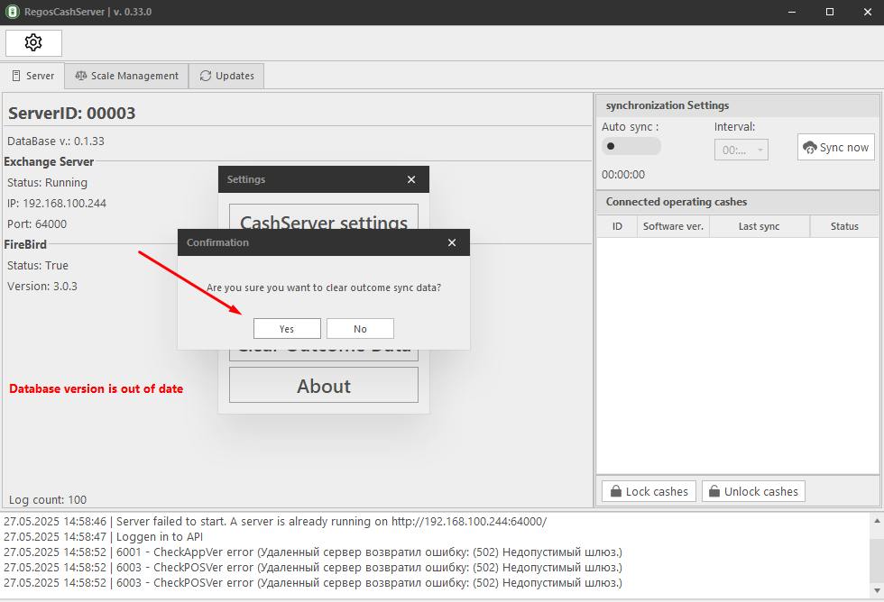 Если появилось сообщение Database version is out of date