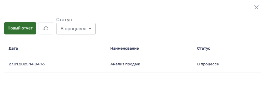 После завершения обработки отчета, прозвучит уведомление и готовый отчёт отобразится в списке подготовленных отчетов (если подготовленный отчёт не отобразился, то рекомендуется обновить список с помощью кнопки "Обновить").
