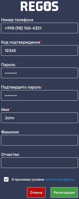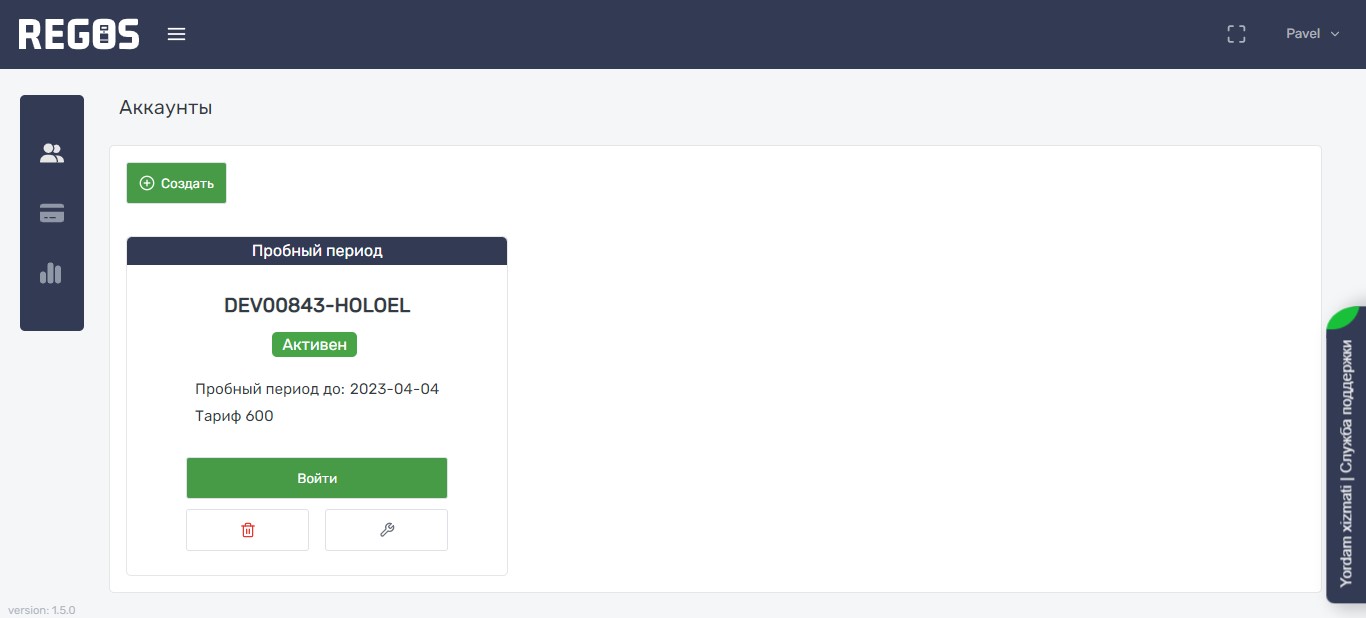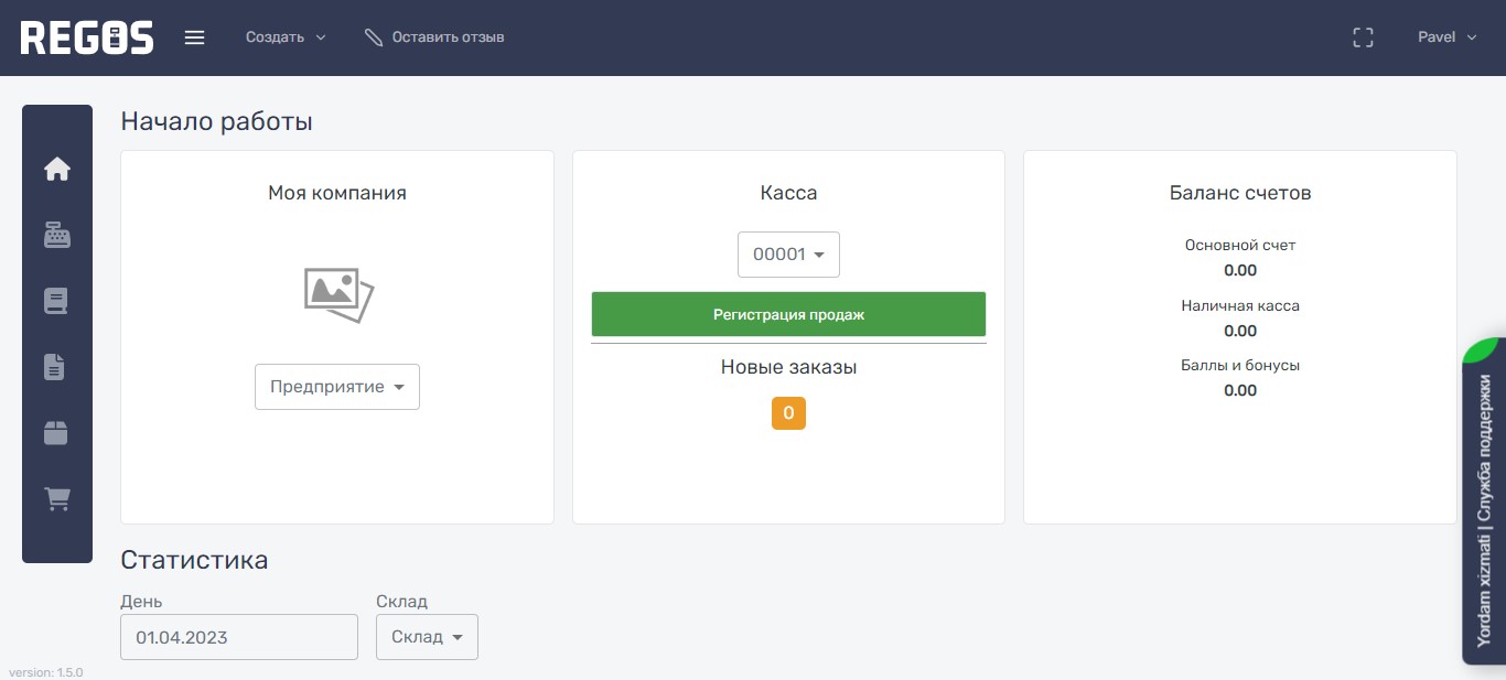 После авторизации или восстановления пароля пользователь попадает на главную страницу REGOS:ONLINE.