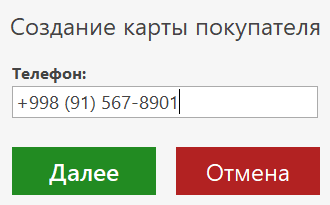 Для начала, необходимо заполнить номер телефона покупателя и нажать Далее.