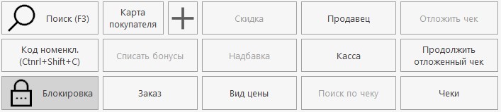 Для удобства, часто используемые дополнительные функции расположены в нижней панели интерфейса регистрации продаж.