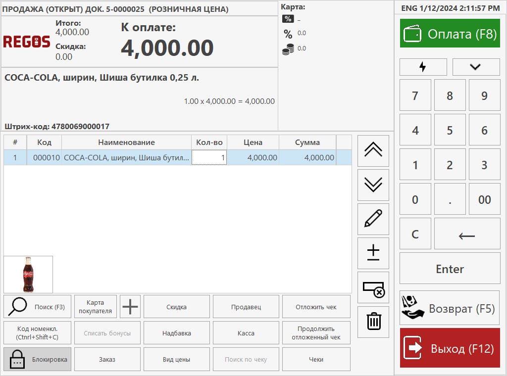 После сохранения система Regos:POS создаёт новый пустой чек.