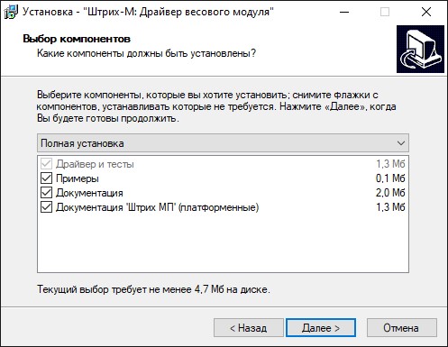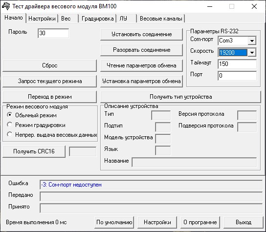 Открыть программу для настройки драйвера весов. Расположение по умолчанию: C:\Program Files (x86)\ШТРИХ-М\Драйвер весового модуля\TestSM.exe