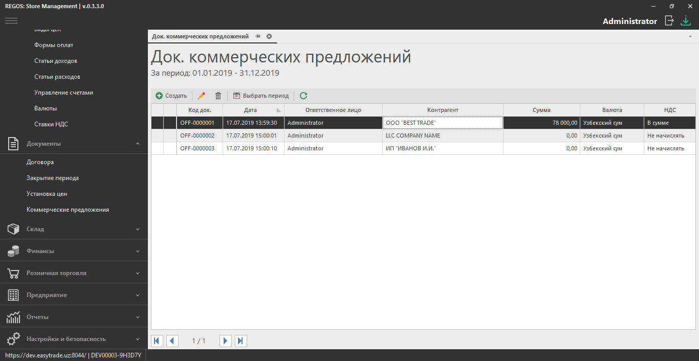 Regos: Store Management позволяет генерировать коммерческие предложения.