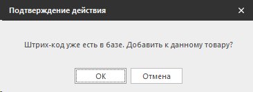 Примечание: при попытке добавить повторяющийся штрих-код, появится предупреждение: