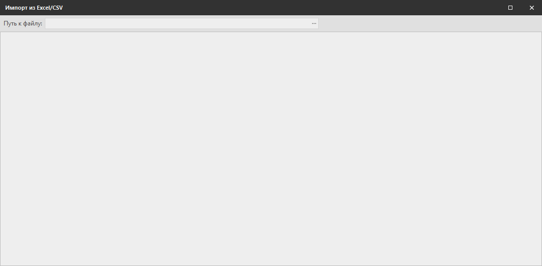 Для начала, в окне импорта необходимо указать путь к импортируемому файлу - в строке "Путь к файлу", нажав на три точки, выбрать нужный файл таблицы.