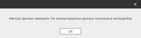 Поле нажатия кнопки Импортировать начинается процесс импорта номенклатуры, в результате отобразится сообщение о завершении импорта.