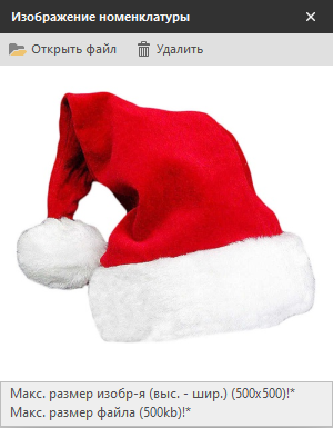 Пункт "Изображение" в контекстном меню открывает окно, в котором можно добавить или удалить изображение для выбранной позиции номенклатуры.