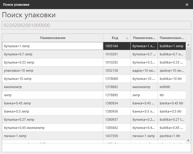 В окне "Поиск упаковки" нужно выбрать подходящую упаковку.