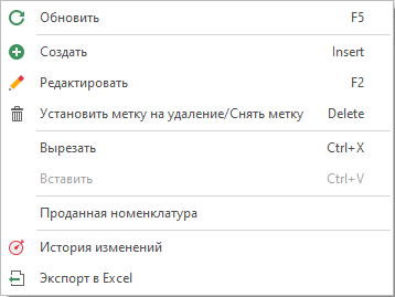 В контекстном меню пункты дублируют все основые действия, расположенные в верхней части окна. Дополнительные пункты: