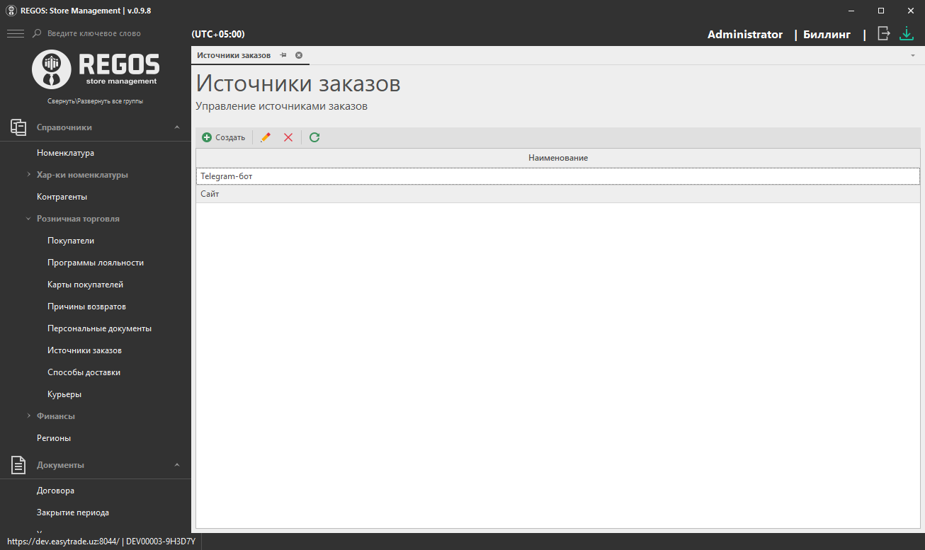 Справочник содержит перечень источников заказов, с помощью которых можно определить, через какое приложение розничный покупатель сделал заказ.