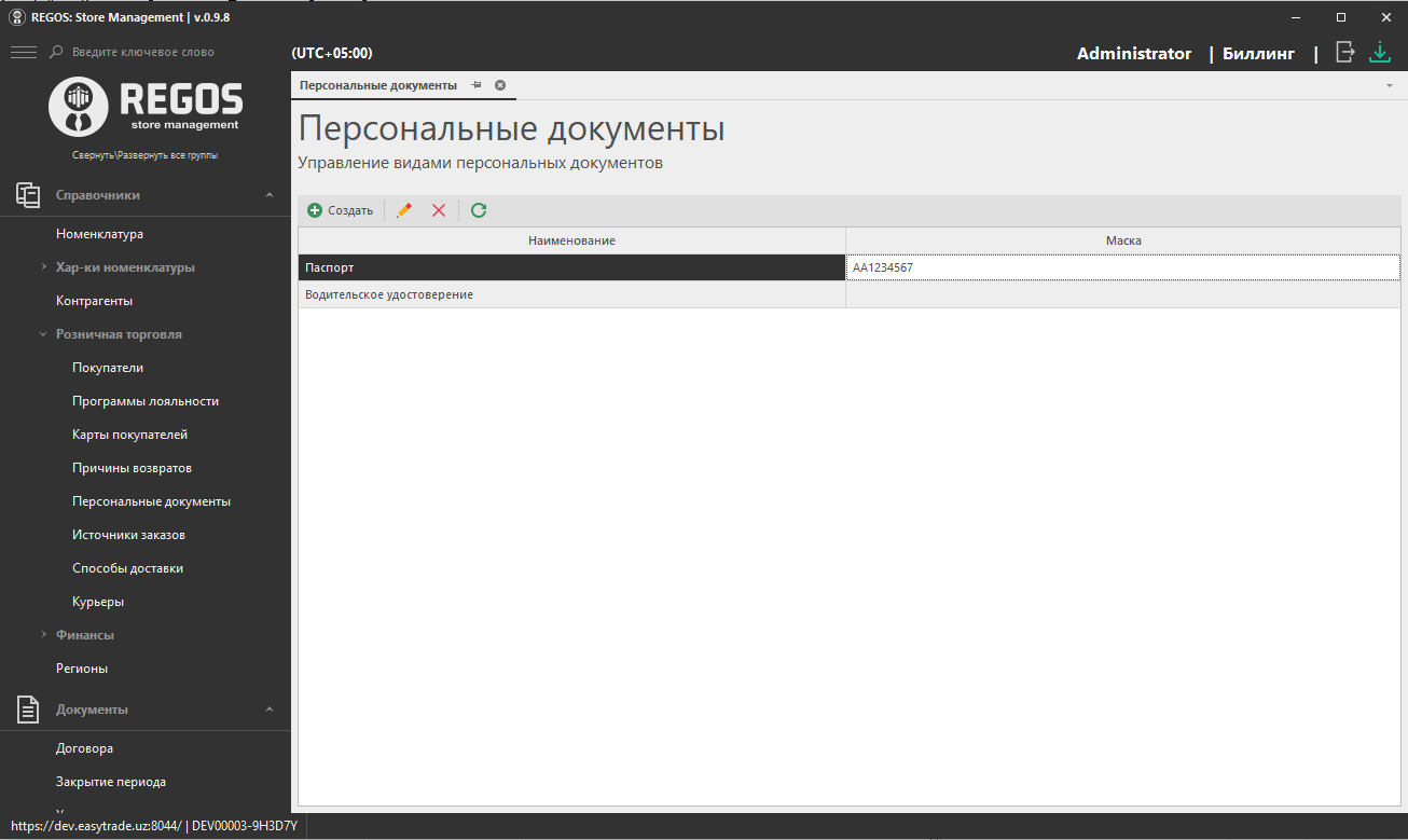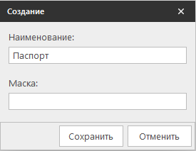 - Маска - маска, для указания формата вводимого номера документа. В данный момент функционал не используется.