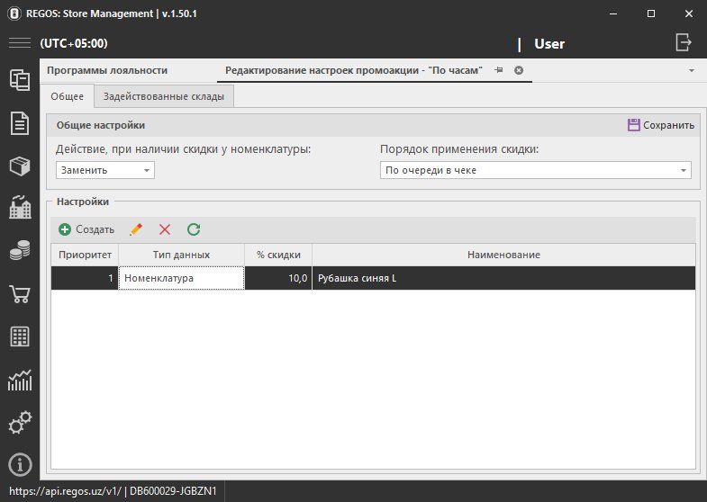 В списке представлены условия, при выполнении которых будет предоставлена скидка, указанная ранее в разделе Настройка.