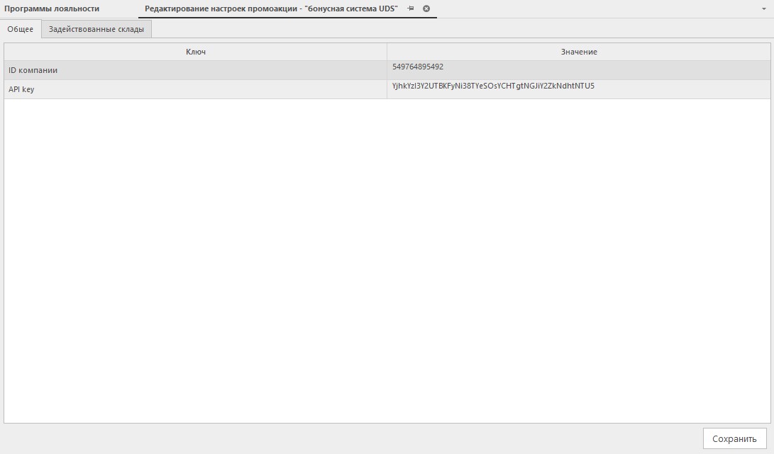 На вкладке "Задействованные склады" добавляются склады, для которых будет задействована бонусная система.