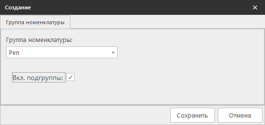 Для установки скидки на группы номенклатуры необходимо добавить группы с помощью кнопки Создать.