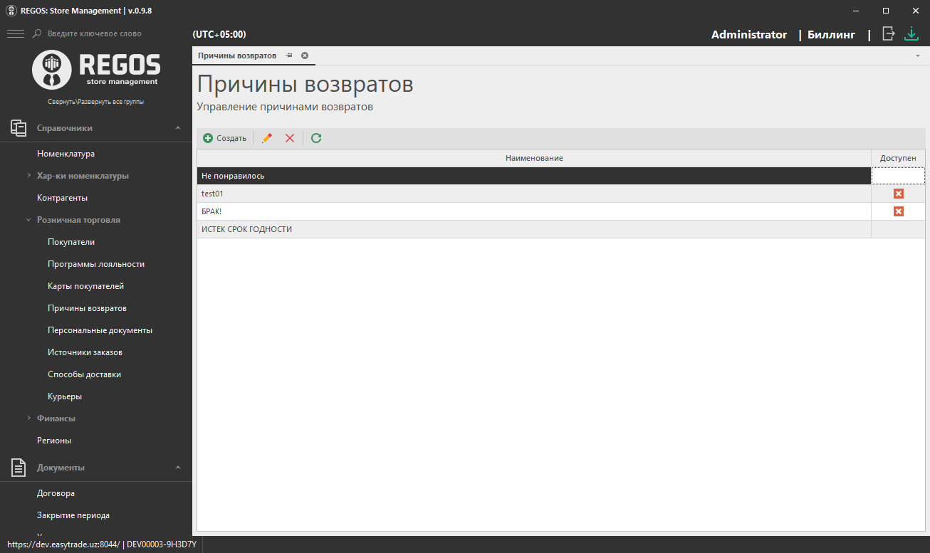 - Метка "Причина доступна для использования" - метка о том, что причина будет отображаться в REGOS:POS при указании причины возврата товара;