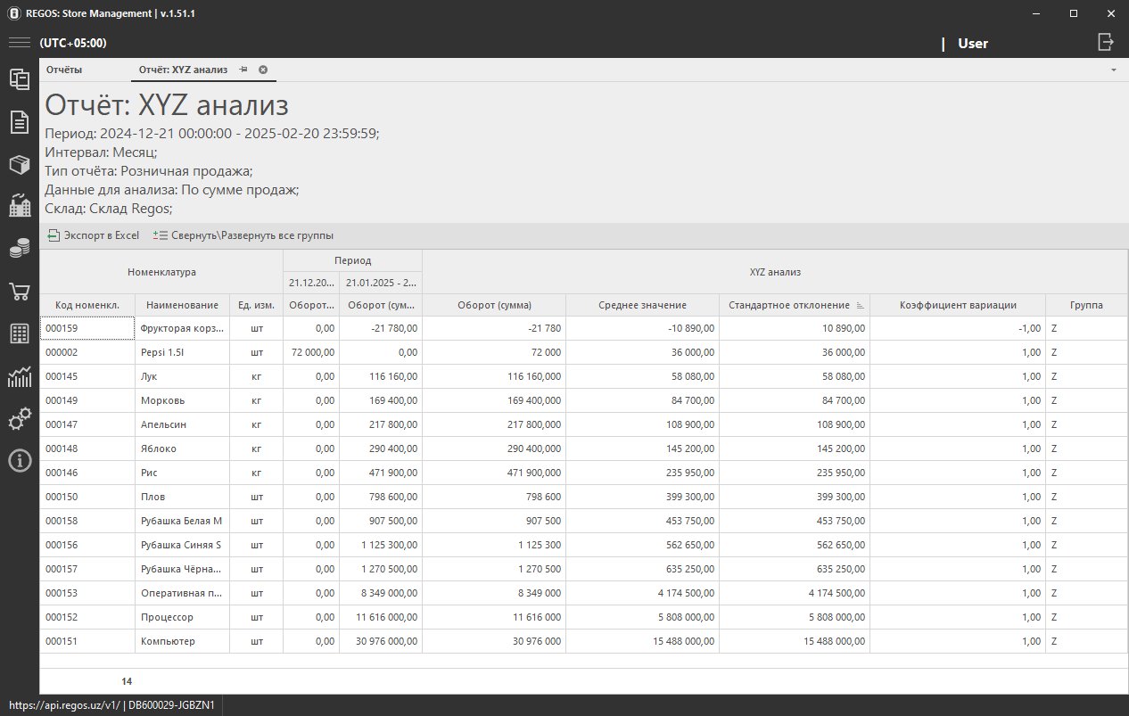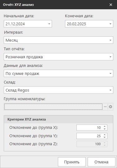 - Группа - Степени колебаний спроса: X (стабильный спрос), Y (умеренные колебания спроса), Z (сильные колебания спроса);