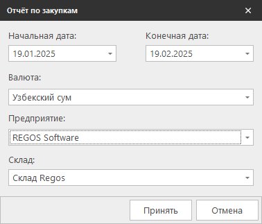 - Начальная дата - Дата, начиная с которой берутся данные для отчёта;