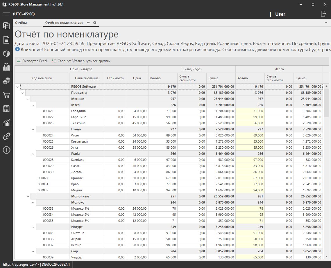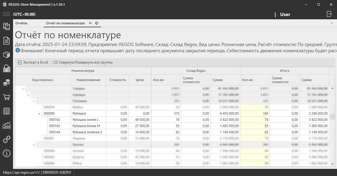 - Сумма стоимости - Сумма стоимости позиции номенклатуры по всем складам;