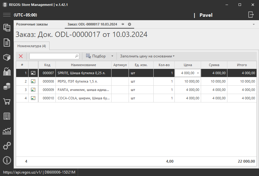 Сервис REGOS позволяет создавать розничные заказы через REGOS: Store Management или через любое другое приложение (Telegram-бот, веб-сайт, мобильное приложение и т.д.), подключенное через API к комплексу REGOS.