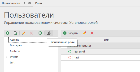 В левой части окна находится управление пользовательскими группами и их ролями.