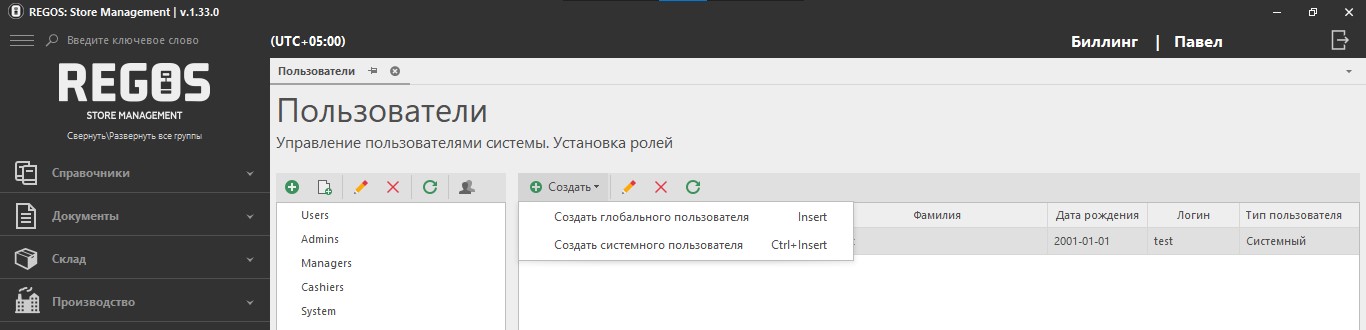 В левой части окна находится управление пользовательскими группами и их ролями.
