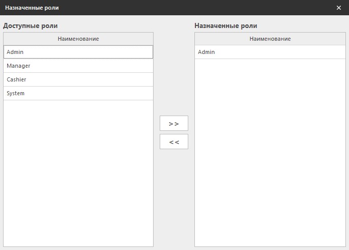 Для назначения роли требуется перенести нужную роль из левой части в правую.