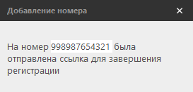 Если пользователь с таким номером не найден, то на номер телефона отправляется СМС со ссылкой для регистрации на сайте. После успешной регистрации, пользователь добавляется со своими: ФИО, номером телефона и паролем.