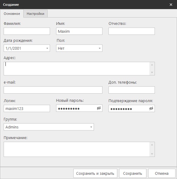 Если пользователь с таким номером уже зарегистрирован, то пользователь добавляется со своими: ФИО, номером телефона и паролем.