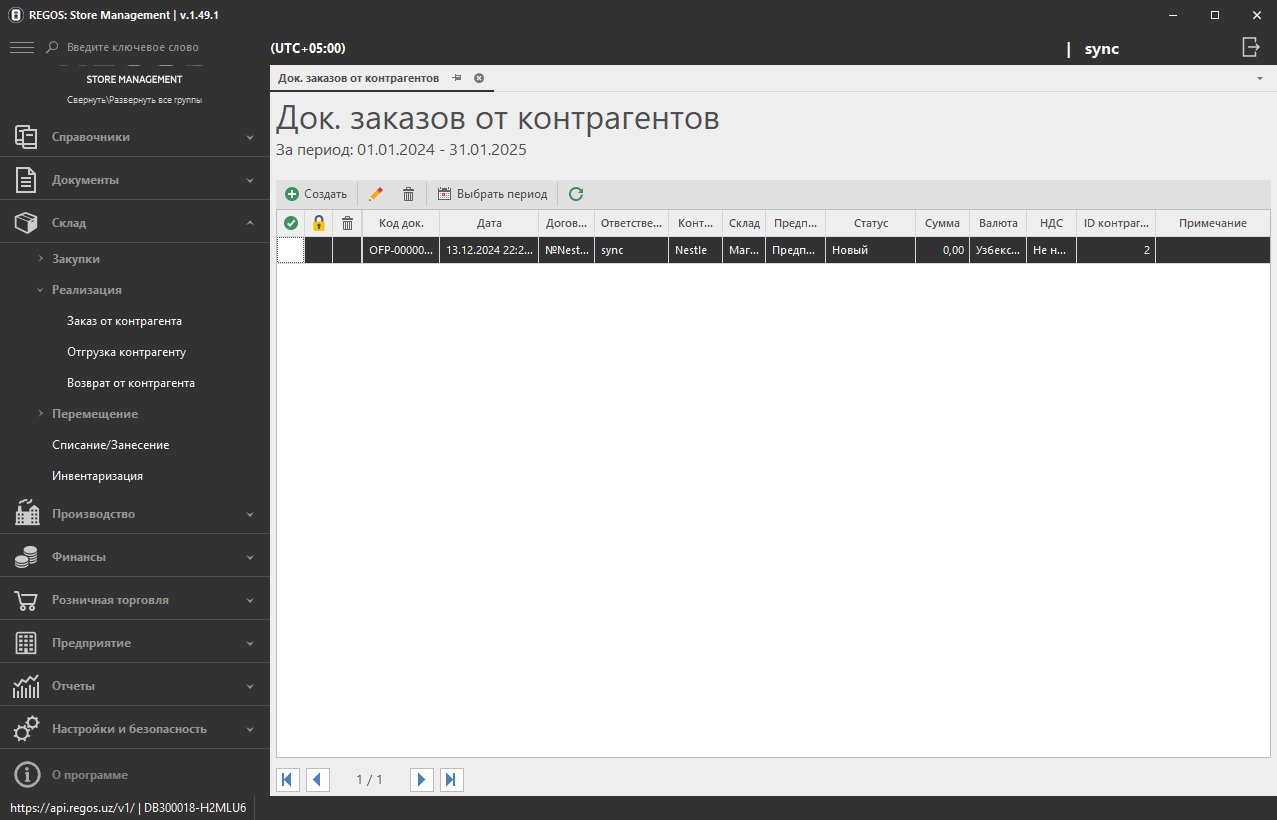 - ID контрагента - Идентификационный номер контрагента, который сделал заказ. Уникальный порядковый идентификационный номер контрагента в сервисе REGOS, присвоенный при создании контрагента.
