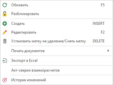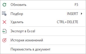 - Экспорт в Excel - Экспорт текущего отображаемого списка документов в Excel;