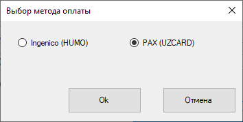 Если подключены сразу несколько терминалов, например PAX и Ingenico, то в появившемся окне нужно выбрать терминал, через каторый будет приниматься оплата.