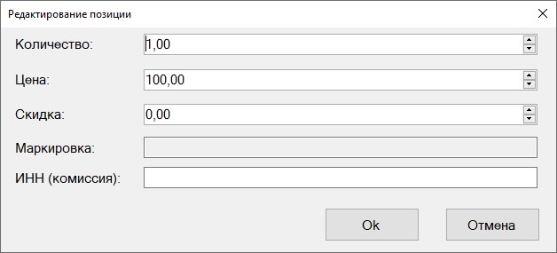 Для редактирования позиции в документе, необходимо её выбрать и нажать кнопку «Редактировать позицию». Во всплывающем окне млжно указать нужное количество и скидку.