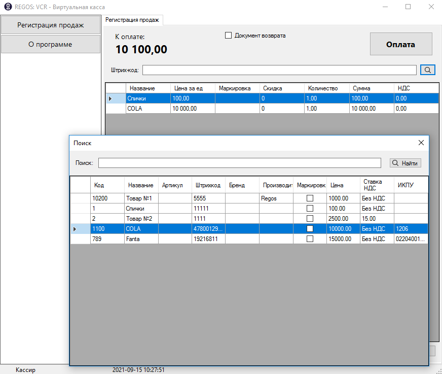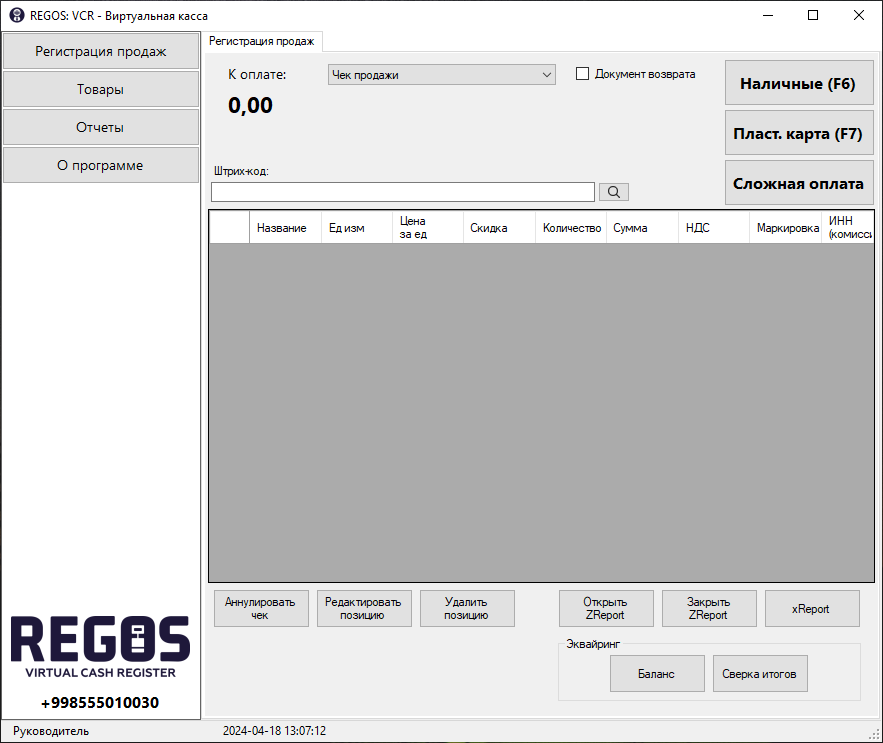 Раздел предназначен для осуществления розничных продаж и возвратов.